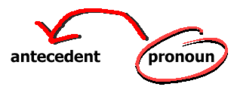 The word, phrase, or clause (Noun) referred to by a pronoun. You may be expected to find this relationship on the exam.