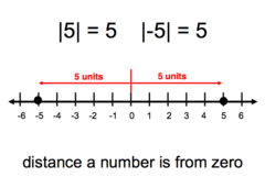 The distance a number is from zero on a number line. ALWAYS POSITIVE