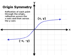 A function where f(−x) = −f(x) for all values of x defined for the function. The graph of the function will be symmetric about the origin.