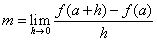 if f is defined on an open interval containing a, and if the limit (see image) exists, then the line passing through (a, f(a)) with slope m is the tangent line to the graph of f at the point (a, f(a)).