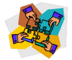 collaborate-v to cooperate, work together
