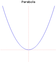 A parabola is a particular kind of mathematical curve. In this course, a parabola is always the graph of a quadratic function y = ax^2 + bx + c where a does not equal 0. The diagram below shows some examples of parabolas. The highest or lowest point on the graph is called the vertex.