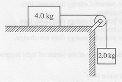 If the tension in string 2 is 4N, and the block is moving at a constant rate, what is the weight of block B. The coefficient of kinetic friction between the block and table is 0.02