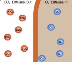 Substances moving from areas of greater concentration to areas of less concentration until equilibrium is reached. (examples: heat moves from warmer to cooler areas; gases, nutrients, water moves across a semipermeable membrane)