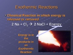 Releases heat during a chemcial reaction, will feel warm (decomposition, hand warmers)