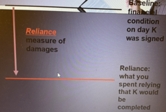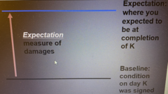 Sunshine offers to sell Squeeze Me one thousand bushels of oranges for $5 per bushel to be delivered on April 1st. Squeeze Me agrees. On March 31st, the price of oranges reaches $9 per bushel and, the next day, Sunshine refuses to deliver the oranges to Squeeze Me. In this case, expectation damages will be measured by taking the market price of the oranges, $9 per bushel, and subtracting from it the contract price, $5 per bushel. Therefore, given the market price of oranges, Squeeze Me would have had $9,000 worth of oranges had Sunshine not breached. Taking the $9,000 value of the oranges and subtracting the $5,000 that Squeeze Me would have paid for the oranges, expectation damages will come to $4,000.
