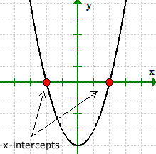 the x-intercepts of the graph of a function; the values of x for which f(x) = 0.