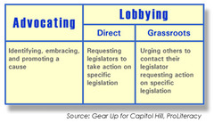 v. the ​activity of ​trying to persuade someone in ​authority, usually an ​elected ​member of a ​government, to ​support ​laws or ​rules that give your ​organization or ​industry an ​advantage.