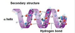 alpha helix and beta pleated sheet resulting from hydrogen bonds