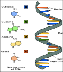 *the sugar in RNA is ribose; Uracil bonds with Adenine; RNA is single-stranded
