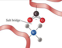 3D protein structure resulting from interactions between R-groups of amino acids. Include hydrophobic and hydrophilic interactions, disulfide bridges, ionic and hydrogen bonds