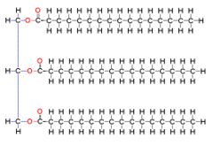 fat in which all three fatty acid chains contain all single bonds between carbon atoms. (solid @ room temp)