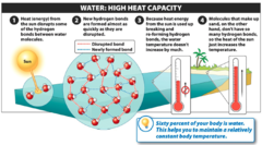 property of water in which water changes temperature very slowly with changes in heat due to hydrogen bonding