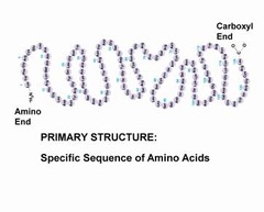 Order of amino acids, each type of protein has a unique primary structure, sequence determines 3D conformation