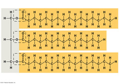 single bonds between all carbons in fatty acid (i.e. saturated with hydrogen), solid at room temperature