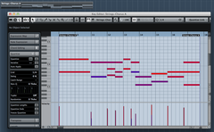 A display of musical events in a DAW (like GarageBand) where the X axis represents time (often musical time in beats and measures) and the Y axis represents pitch or different sounds mapped according to the keys on a piano or keyboard.