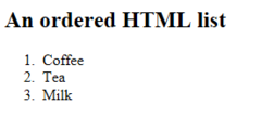Very similar to unordered lists, except each item is in numerical or alphabetical order.