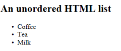 Text that formats individual list items in bullet points which are added using the <li> element.