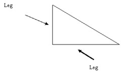 An outer ray of an angle; one of the two shorter sides of a right triangle that always connect at the 90 angle.