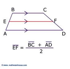 Segment connecting the midpoints of two legs of a triangle or the midpoints of the non-parallel sides of a trapezoid.