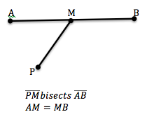 a segment, ray, line, or plane that intersects a segment at its midpoint