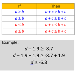 A mathematical sentence that contains less than, greater than, less than or equal to, greater than or equal to, or not equal
