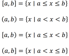 A notation for representing an interval as a pair of numbers. The numbers are the endpoints of the interval.