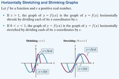 General term for ways to manipulate the shape or position of a graph. Types of transformation include translation (shifts), reflection, and dilation (compression and stretch). Specific parameter changes on parent functions cause certain types of transformations on the graph of the function.