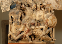 Before the start of the play, he became the ruler of Denmark by pouring poison into the ear of his sleeping brother, King Hamlet. He then married Gertrude, King Hamlet's widow. In the play's first act, Prince Hamlet learns of his uncle's treachery by speaking to King Hamlet's ghost. Hamlet then arranges for a troupe of actors to perform a play titled The Murder of Gonzago, which Hamlet revises to increase the similarities to his father's death. He is disturbed by the performance, and storms out during the murder scene. Later, he prays for forgiveness, causing Hamlet to delay killing him out of fear that his soul would go to heaven. As Hamlet feigns madness, he sends him to England with Rosencrantz and Guildenstern, who unknowingly carry a letter calling for Hamlet's execution. After Hamlet escapes and returns to Denmark, he arranges for Hamlet to fight a duel with Laertes, who seeks revenge for the death of his father, Polonius, and sister, Ophelia. Laertes uses a poison-tipped sword, and he prepares a poisoned drink as a back-up. When Laertes falls in combat he reveals the plot, prompting Hamlet to stab him with the poisoned sword, and make him drink from the poisoned cup.