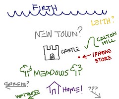 Shows mainly roads, but also major highways, airports, and local points of interest