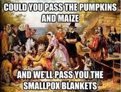 This colony was started by the Pilgrims at Plymouth (Massechusetts). In the first winter nearly half of them perished. They were helped by friendly American Indians and celebrated the first Thanksgiving in 1621. (p. 26)