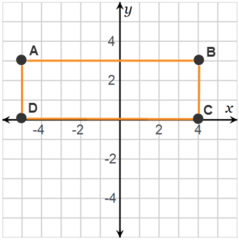 Shelbi is drawing plans for a garden, measured in feet, which is shown on the coordinate plane,