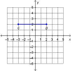 What is the length of line segment CD with endpoints (-3, 2) and (2, 2) as shown on the coordinate plane?