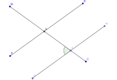 Two angles whose sum is 180 degrees (do not have to be adjacent)