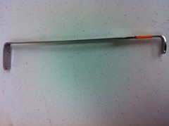 Bladder blade used with Balfour Retractor to retract and protect bladder during open abdominal procedures.