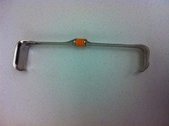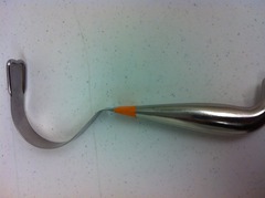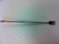 Retracting and Exposing. Double ended hand held retractor. One end blade is longer than the other end.