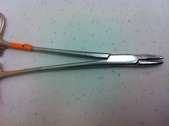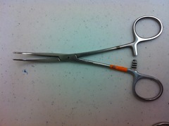 Straight Mosquito Clamp or Curved Mosquito Clamp , serrations along entire length of the jaw.