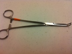Clamping. Often used to pass things under structures or separate and dissect soft tissue structures