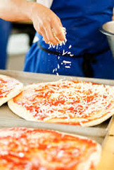 to scatter drops of liquid or particles of powder over the surface of a food