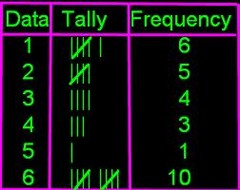 A table for organizing a set of data that shows the number of times each item or number appears.