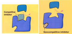 Inhibitor and substrate "compete" for active site (penicillin- blocks enzyme bacteria used to build cell walls) (disulfiram- treats chronic alcoholism) over come by increasing substrate concentration